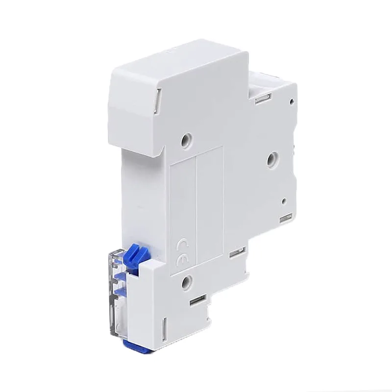 1.Ontworpen voor eenvoudige installatie in de elektrische schakelkast: haak de timer eenvoudig aan de reling en druk totdat u een "klik" hoort. Om te verwijderen trekt u de pal aan de onderkant van de timer naar beneden om deze los te maken.