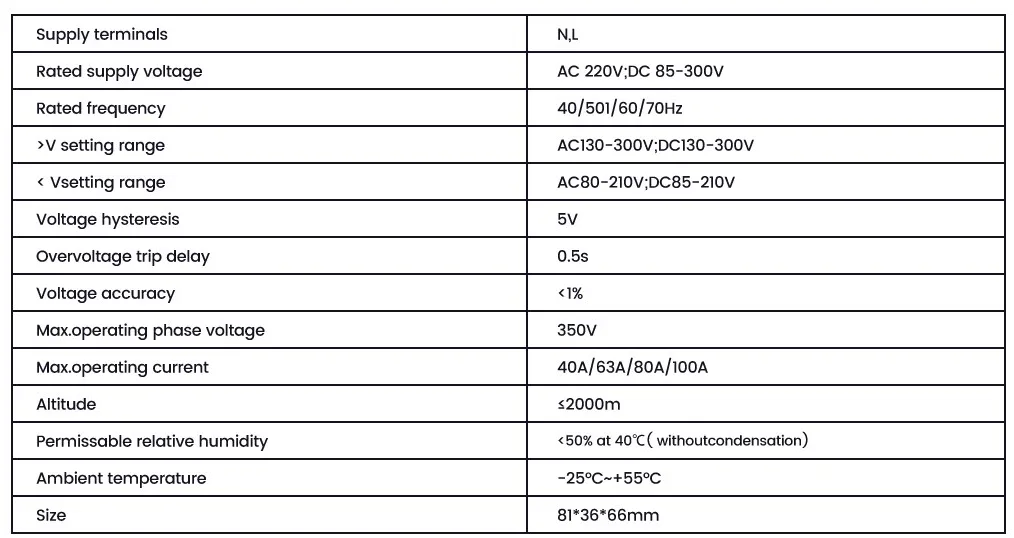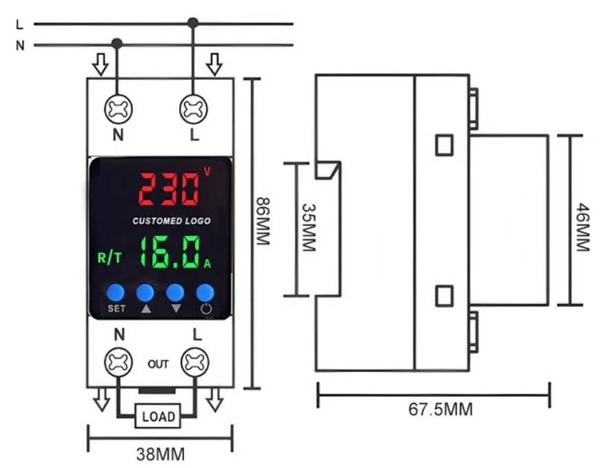 XUCKY hoogwaardige over- en onderspanningsbeschermer kan spanning, stroom, vermogen en frequentie in realtime bewaken en biedt rondom bescherming voor apparatuur om inbranden, uitschakelen en verlies veroorzaakt door spanningsschommelingen te voorkomen. Tegelijkertijd heeft het de kenmerken van een eenvoudige installatie, duidelijke weergave en instelbare parameters. Model: PN2-VA4 1. Beveiliging tegen over-/onderspanning 2. Overstroombeveiliging 3. Groot digitaal LED-display 4. Instelbare parameterinstellingen 5. Aanpasbare logoweergave 6. Op microcontrollers gebaseerde intelligente besturing 7. Din-Rail-montage voor eenvoudige installatie