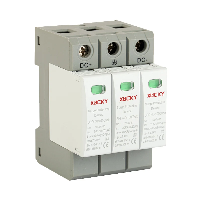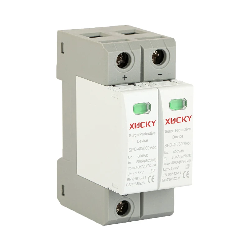 XUCKY PV SPD-overspanningsbeveiligingsapparaat is van toepassing op de laagspanningsnorm IEC EN 50539-11 en wordt gebruikt om het DC-systeem en andere apparatuur te beschermen tegen overspanning en onmiddellijke overspanningsschade. Wanneer het DC-systeem overspanning ervaart als gevolg van blikseminslag of andere redenen, geleidt de beschermer onmiddellijk binnen nanoseconden, waardoor overspanning naar de aarde wordt geïntroduceerd, waardoor de elektrische apparatuur op het puntnetwerk wordt beschermd. DC-overspanningsbeveiligingsapparaat is een plug-in-structuur die snel kan worden vervangen na een modulestoring; Nadat de bliksembeveiligingsmodule uitvalt, verandert de kleur van het indicatievenster van groen in rood en wordt er een alarmsignaal verzonden naar het externe alarmapparaat dat is aangesloten op de externe signaalterminal van het product.