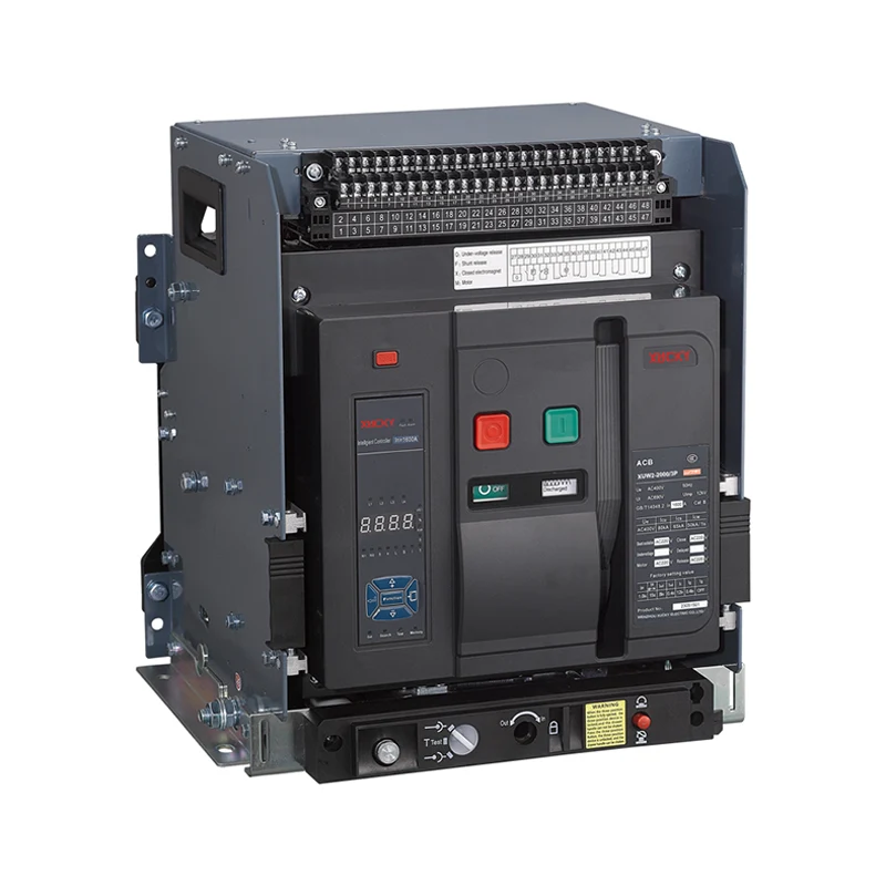 XUCKY Electric's XUW1 luchtstroomonderbreker, ACB (hierna stroomonderbreker genoemd) is geschikt voor distributienetwerken met AC 50Hz, nominale spanning tot 660V (690V) en lager, de nominale stroom 630A ~ 6300A, gebruikt om stroom te verdelen en de lijn te beschermen en stroomapparatuur tegen overbelasting, onderspanning, kortsluiting, eenfasige aarding en andere fouten. Air Circuit Breaker heeft een intelligente beveiligingsfunctie, selectieve bescherming is nauwkeurig, kan de betrouwbaarheid van de stroomvoorziening verbeteren en onnodige stroomuitval voorkomen. Tegelijkertijd heeft het een open communicatie-interface om "Vier afstandsbedieningen" uit te voeren om te voldoen aan de eisen van het controlecentrum en het automatiseringssysteem. De stroomonderbreker heeft een impulshoudspanning van 8000 V op 2000 meter (herzien op verschillende hoogten, niet hoger dan 12000 V). De ACB-luchtstroomonderbreker is niet uitgerust met een intelligente controller en sensor en kan als isolator worden gebruikt.